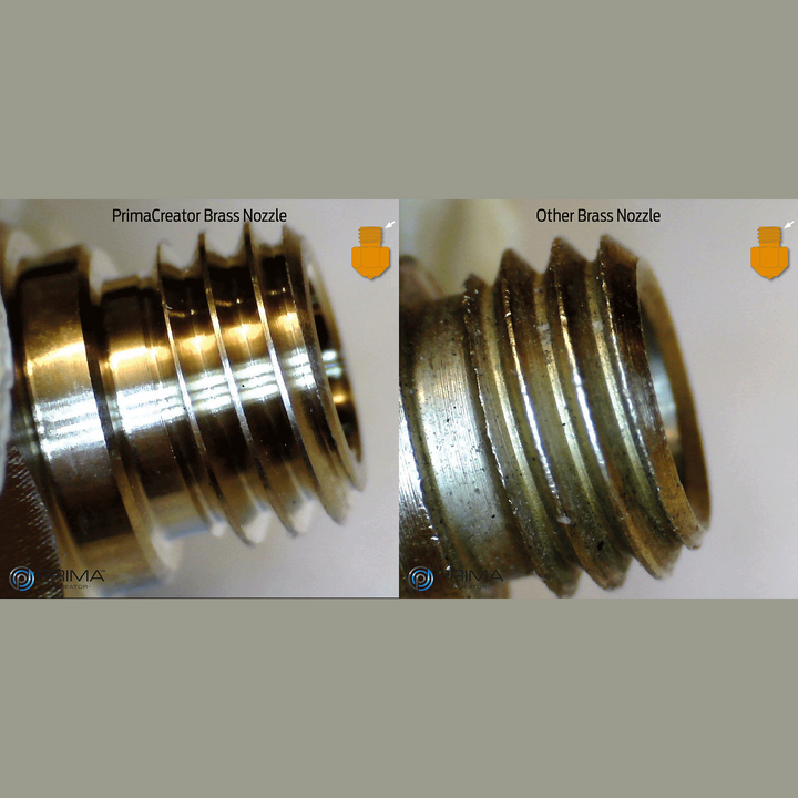 Die Premium-Düsen von PrimaCreator sind speziell dafür konzipiert, die Druckqualität erheblich zu verbessern. Eine hochwertige Düse ist vergleichbar mit einem scharfen Bleistift – sie ist entscheidend für ein hervorragendes Druckergebnis.