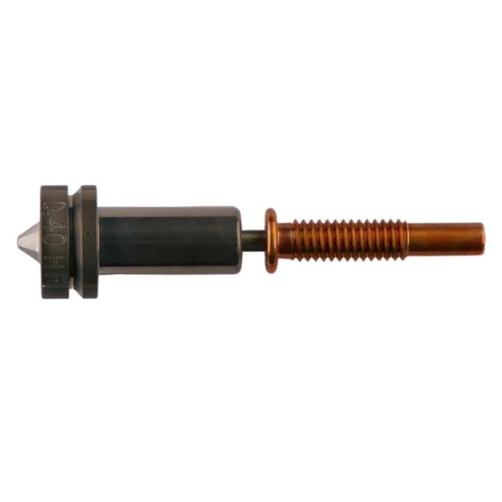 Die HF HT-A Düsen kombinieren eine gehärtete Stahlspritze mit Kupferträger und -verteiler, wodurch eine hervorragende Wärmeübertragung erreicht wird. Die Chromnitrid-Beschichtung schützt zusätzlich vor Abrieb, Korrosion und Anhaften von Filament. Durch das High Flow Design steigt die Schmelzrate deutlich – perfekt für großvolumige oder schnelle Drucke mit technischen Materialien.