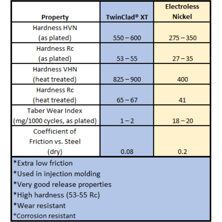 Die MICRO SWISS Düse ist eine hochwertige RepRap-Düse, die aus einem 360 Brass-Basismaterial gefertigt und mit einer TwinClad XT-Beschichtung versehen ist. Diese spezielle Nickel-Verbundbeschichtung wurde entwickelt, um eine extrem niedrige Reibung zu gewährleisten. Sie bietet einen der niedrigsten Reibungskoeffizienten und übertrifft damit herkömmliche Nickel-Beschichtungen mit PTFE-Co-Deposit. Darüber hinaus ist die Beschichtung sehr hart und abriebfest, was die Lebensdauer Ihrer Düse erheblich verlängert, insbesondere wenn Sie mit abrasiven Materialien wie Carbonfaser, Edelstahl, Holzfüllungen oder anderen metallgefüllten Filamenten arbeiten.