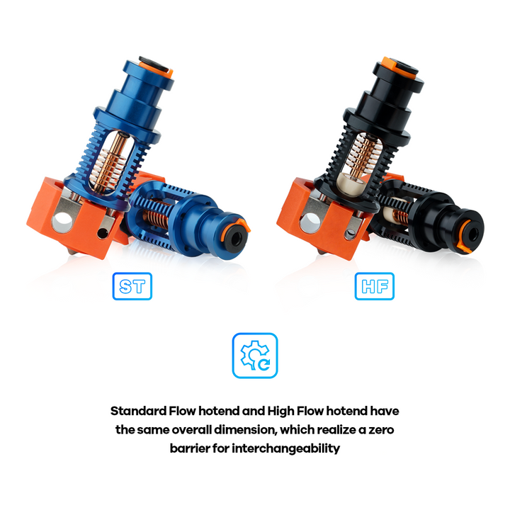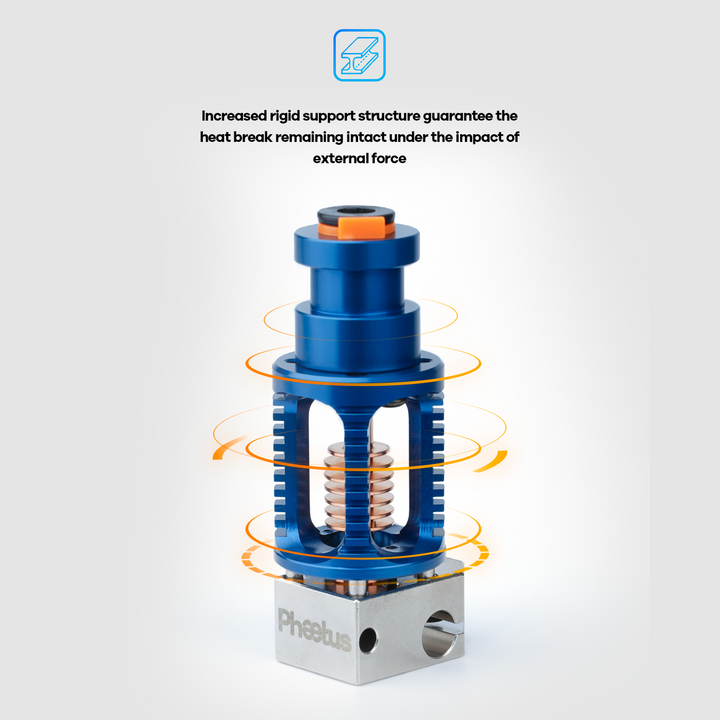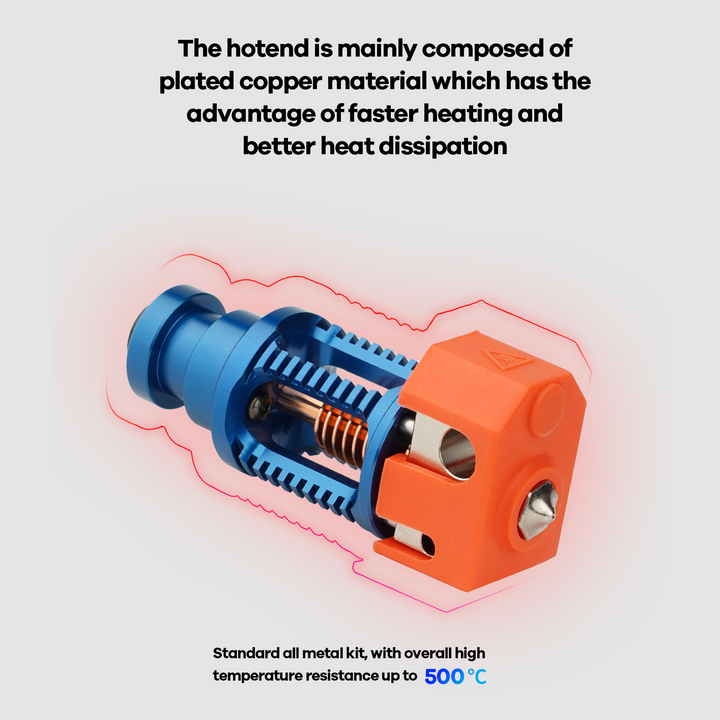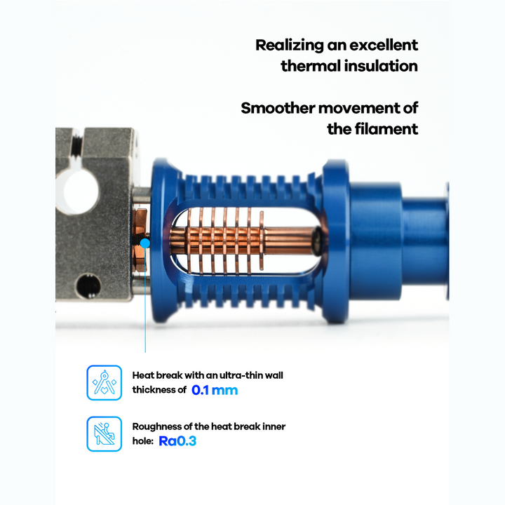 - Innendurchmesser der Düse und des Heat Breaks von 0,4 mm für einen reibungslosen Filamentfluss und höhere Druckauflösungen.
