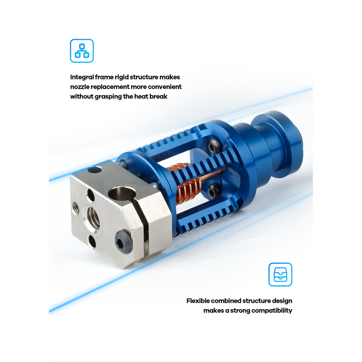 - Integrierte Rahmenstruktur ermöglicht einen einfachen Austausch der Düse, ohne den Heizblock zu greifen.